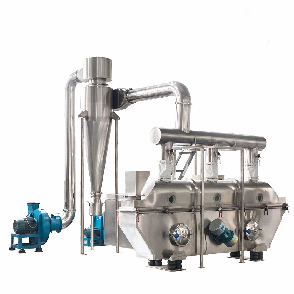 Titreşimli akışkan yataklı kurutucu, özel amaçlı bir tür yoğunlaştırılmış kurutma cihazıdır.Genellikle son kurutma için kullanılır. Malzemelerin akışkanlaştırılması, kurutma işleminde mekanik titreşim ile desteklendiğinden, sadece sınır tabakası türbülansına ve ısı ve kütle transferinin arttırılmasına faydalı olmakla kalmaz, aynı zamanda kurutma ekipmanının nispeten kararlı akış mekanik altında çalışmasını sağlar. koşullar. Bu ekipman iyi bir kurutma işlevine sahiptir, ancak aynı zamanda malzeme soğutma, eleme ve taşıma işlemleriyle işlemin ihtiyaçlarına göre. Şu anda şeker, ilaç, gübre, kimya endüstrisi, plastik, süt ürünlerinde yaygın olarak kullanılmaktadır. , tuz endüstrisi ve madencilik ve metalurji endüstrileri. Teknoloji temelde olgun ve seri hale getirildi.